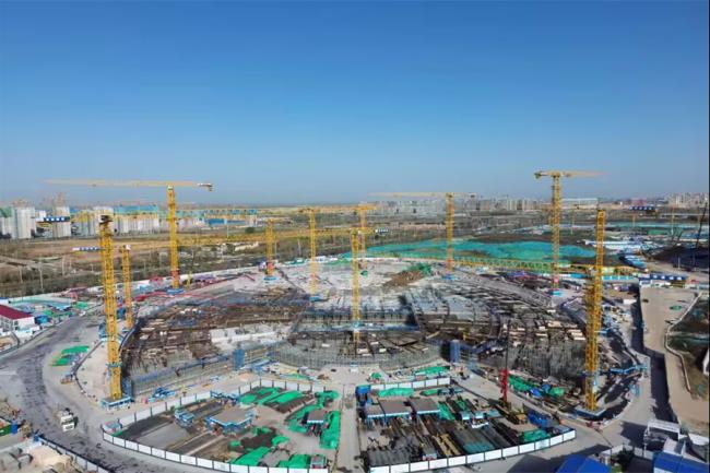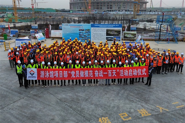 開(kāi)局決戰,展現城建速度。集團承建的濟南起步區黃河體育及科技園區基礎設施一期工程游泳館及全民健身中心施工項目設計為甲級體育建筑,總建筑面積為16.63萬(wàn)平方米,總座席數約4000 座,地上部分為游泳跳水館和全民健身功能。項目包括“水主題”健身休閑活動(dòng)中心、“水主題”文化展示活動(dòng)中心、時(shí)尚體育中心三大部分。工程建設初期,項目團隊第一時(shí)間召開(kāi)動(dòng)員大會(huì ),全力疏通施工“痛點(diǎn)、難點(diǎn)、堵點(diǎn)”,堅持高標準、嚴要求施工原則,完成土方開(kāi)挖16.6萬(wàn)立方米,混凝土澆筑38400立方米,鋼筋綁扎5680噸,高質(zhì)高效推動(dòng)項目建設。