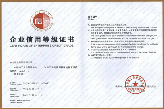 集團被評為中國施工企業(yè)管理協(xié)會(huì )“AAA”級信用企業(yè)