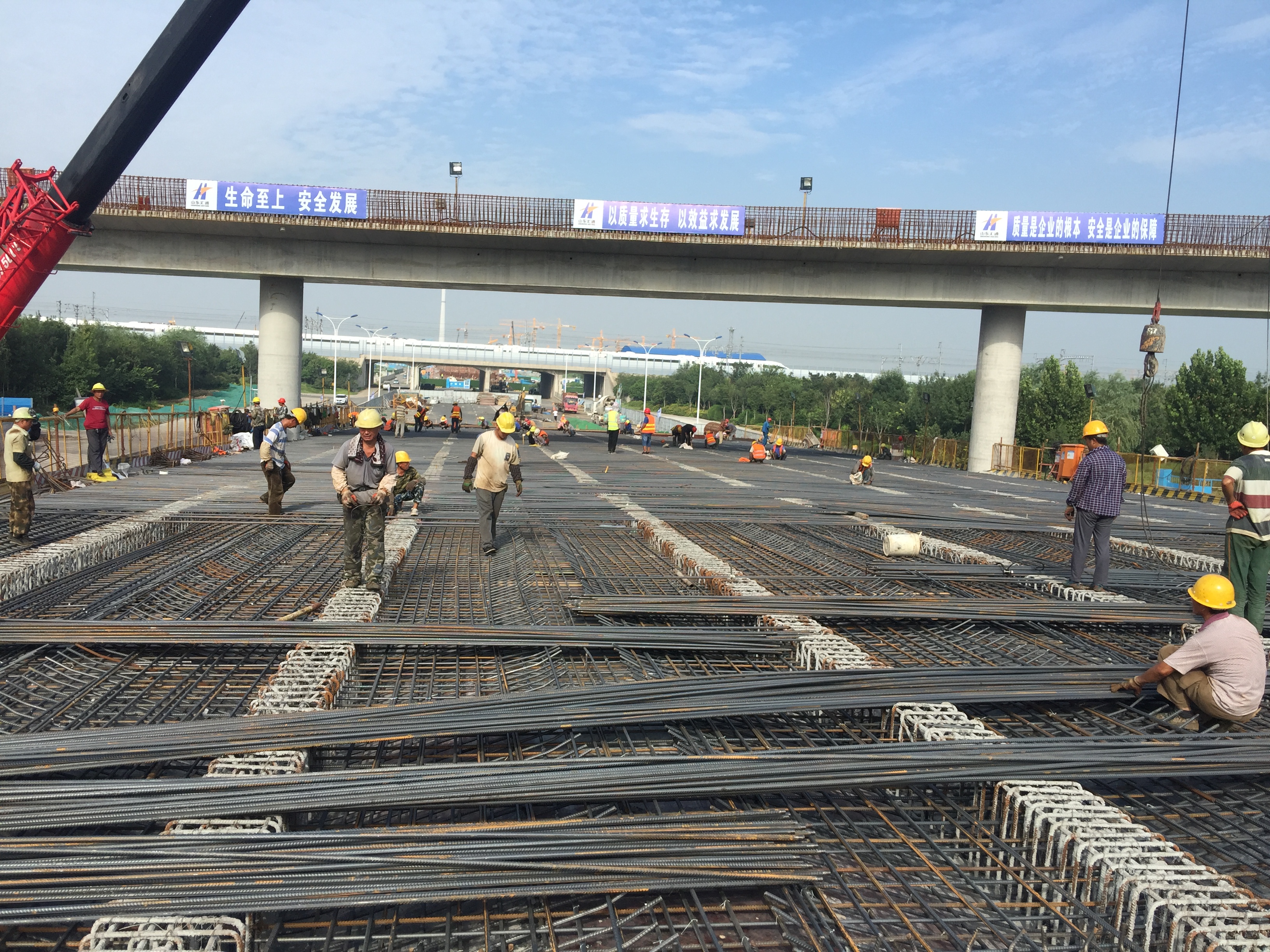??? 集團領(lǐng)導統一調度、周密部署,全體參建人員忘我?jiàn)^戰、不懈努力,在保證質(zhì)量的同時(shí),全面加快施工進(jìn)度,率先完成全線(xiàn)首聯(lián)箱梁砼澆筑、首聯(lián)樁基施工、首個(gè)承臺施工、首段瀝青試驗? 段攤鋪。工程地處城區,交通流量大、地下管網(wǎng)復雜、制約因素多。特別是在京臺高速立交橋范圍內,需拆遷三個(gè)村的耕地、房屋和山東高速、林業(yè)局等苗木,社會(huì )環(huán)境復雜,拆遷量大,施工干擾多。面對重重困難和挑戰,集團領(lǐng)導超前謀劃,統籌安排,協(xié)調組織,全面分析施工中的重點(diǎn)、難點(diǎn)和關(guān)鍵點(diǎn),不斷優(yōu)化施工方案,科學(xué)安排施工任務(wù),按照“施工促拆遷原則”,合理劃分施工區域,多方協(xié)調,穿插展開(kāi)樁基、承臺施工,于6月底順利實(shí)現了主線(xiàn)下部結構的目標任務(wù)。
