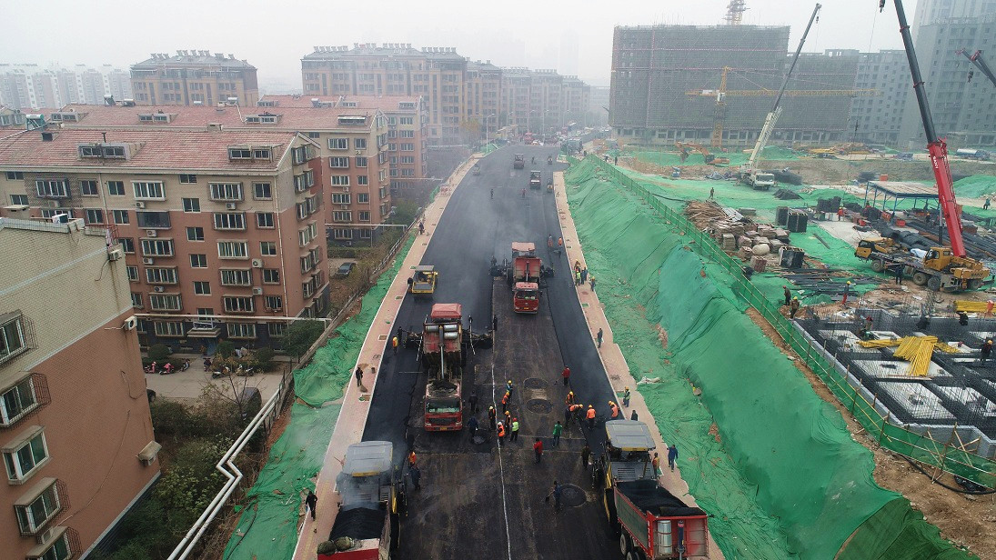 白馬山東路二期道路建設工程瀝青面層攤鋪全部完成
