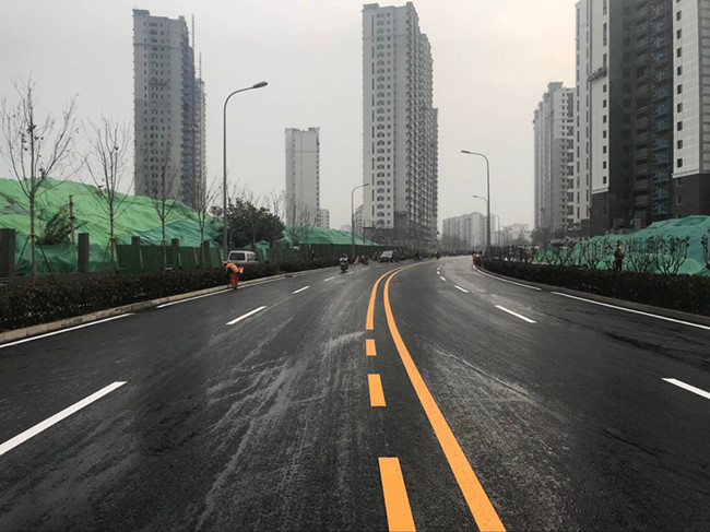 ??? 本次攤鋪工作歷時(shí)兩天,施工總長(cháng)度1.95km,攤鋪厚度4cm,攤鋪總面積約33500㎡。工程自東向西共經(jīng)過(guò)9個(gè)路口,車(chē)輛通行壓力大,項目部和科室提前策劃交通導改方案,合理分工,耐心疏導,確保攤鋪過(guò)程的連續性,順利完成了全線(xiàn)快車(chē)道攤鋪任務(wù),向政府和市民交上一份滿(mǎn)意答卷。