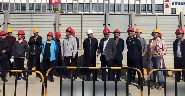 ??? 11月1日上午,泰州市住房和城鄉建設局副局長(cháng)孫建華帶領(lǐng)泰州住建系統26名專(zhuān)家組成的觀(guān)摩團,到六分公司承建的永定路工程參觀(guān)學(xué)習。六分公司分管副經(jīng)理單坤山圍繞質(zhì)量控制、揚塵治理、標準化施工等方面做了詳細介紹。