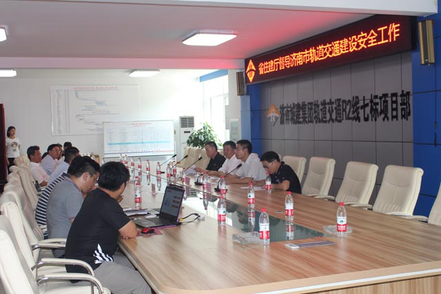 ??? 6月26日下午,由省住建廳監察專(zhuān)員都昌林帶隊,城建處副調研員王冠、市城鄉建設委副主任武兆軍、市質(zhì)監站副站長(cháng)陳國華及特邀專(zhuān)家組成的督導組到濟南軌道交通R2線(xiàn)七標段辛祝路站督導安全建設工作。軌道交通集團副總經(jīng)理楊曉東,第二項管中心、濟南城建集團等有關(guān)工作人員陪同。