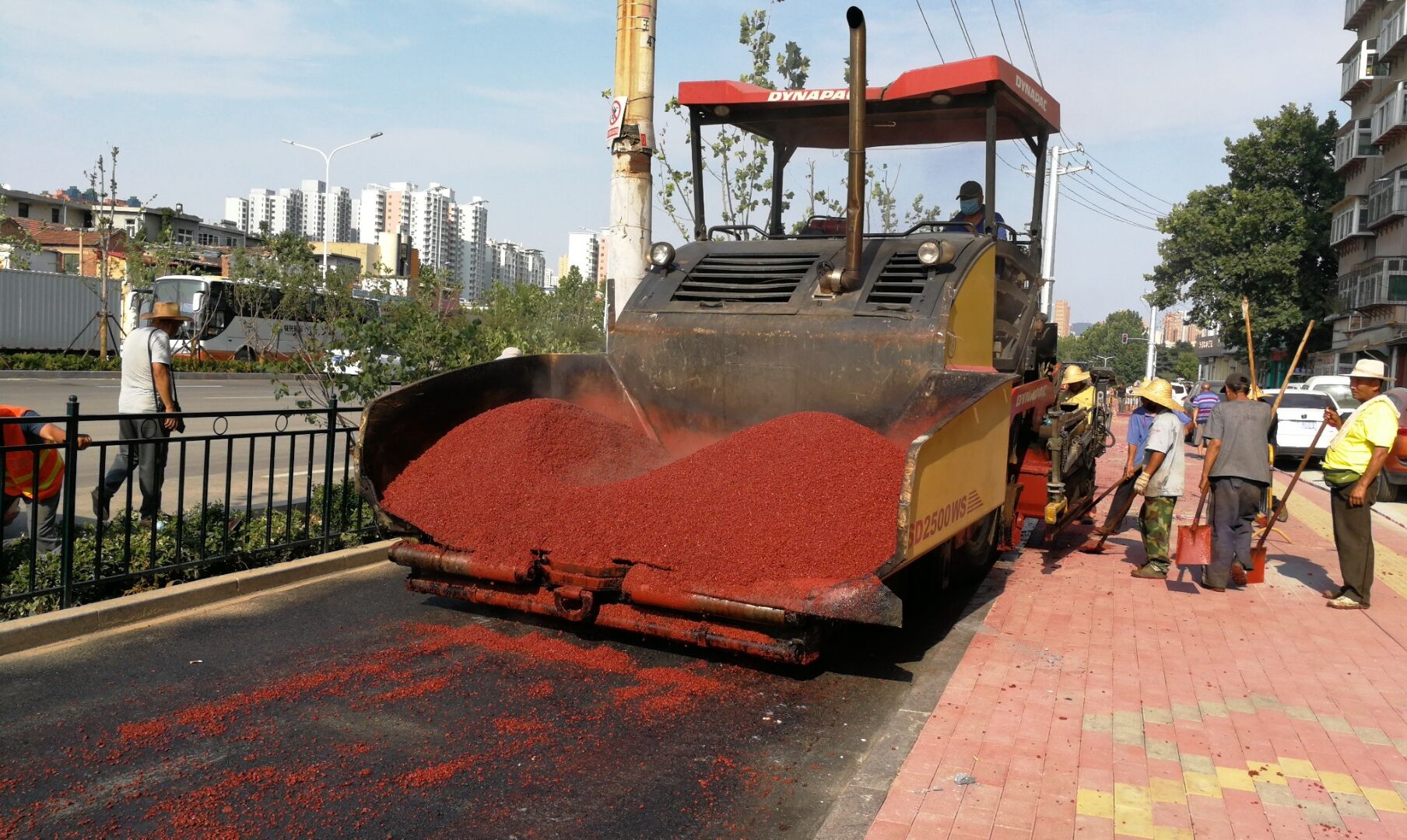 劉長(cháng)山路慢車(chē)道彩色瀝青攤鋪全面展開(kāi)