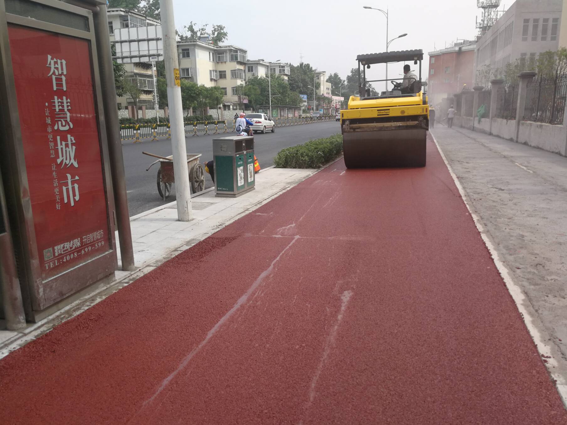 玉函路慢車(chē)道彩色瀝青攤鋪