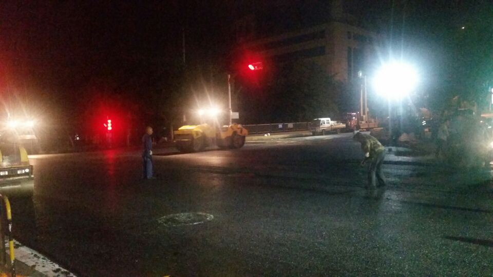 ??? 由于施工任務(wù)相對集中、夜間施工多、工地分散運距長(cháng)、混合料級配多樣,包括瀝青砂、彩色瀝青等,生產(chǎn)組織較為困難。面對困難與挑戰,五分公司瀝青攤鋪?lái)椖坎堪凑占瘓F統一部署,周密組織施工,項目部全體干部職工發(fā)揚鐵軍精神,夜以繼日持續奮戰在施工一線(xiàn),快速靈活地展開(kāi)瀝青攤鋪作業(yè)。