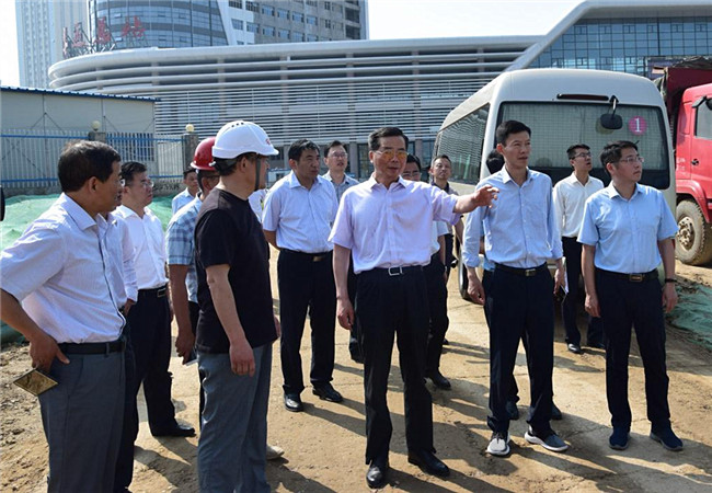 韓軍書(shū)記(前排右三)察看工程現場(chǎng)
