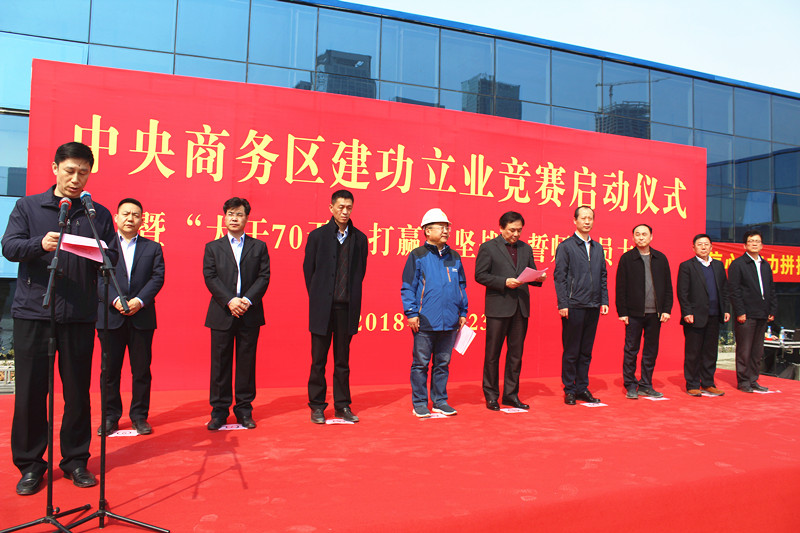 ??? 大會(huì )以“大干70天,打贏(yíng)攻堅戰”為主題,全面啟動(dòng)2018年建功立業(yè)競賽活動(dòng),激勵各參建單位在比質(zhì)量、比進(jìn)度、比效益、比創(chuàng )新和節能減排、比安全生產(chǎn)和文明施工、保障服務(wù)等競賽環(huán)節中銳意進(jìn)取,奮勇?tīng)幭?。同時(shí)要求各參建單位抓住施工建設的黃金季節,科學(xué)組織、精心安排,迅速掀起CBD建設勞動(dòng)競賽的新高潮,盡快形成“比、學(xué)、趕、超”的良好氛圍,實(shí)現全線(xiàn)進(jìn)度提速、項目整體推進(jìn)的良好局面,確保中央商務(wù)區建設按時(shí)高效完成。