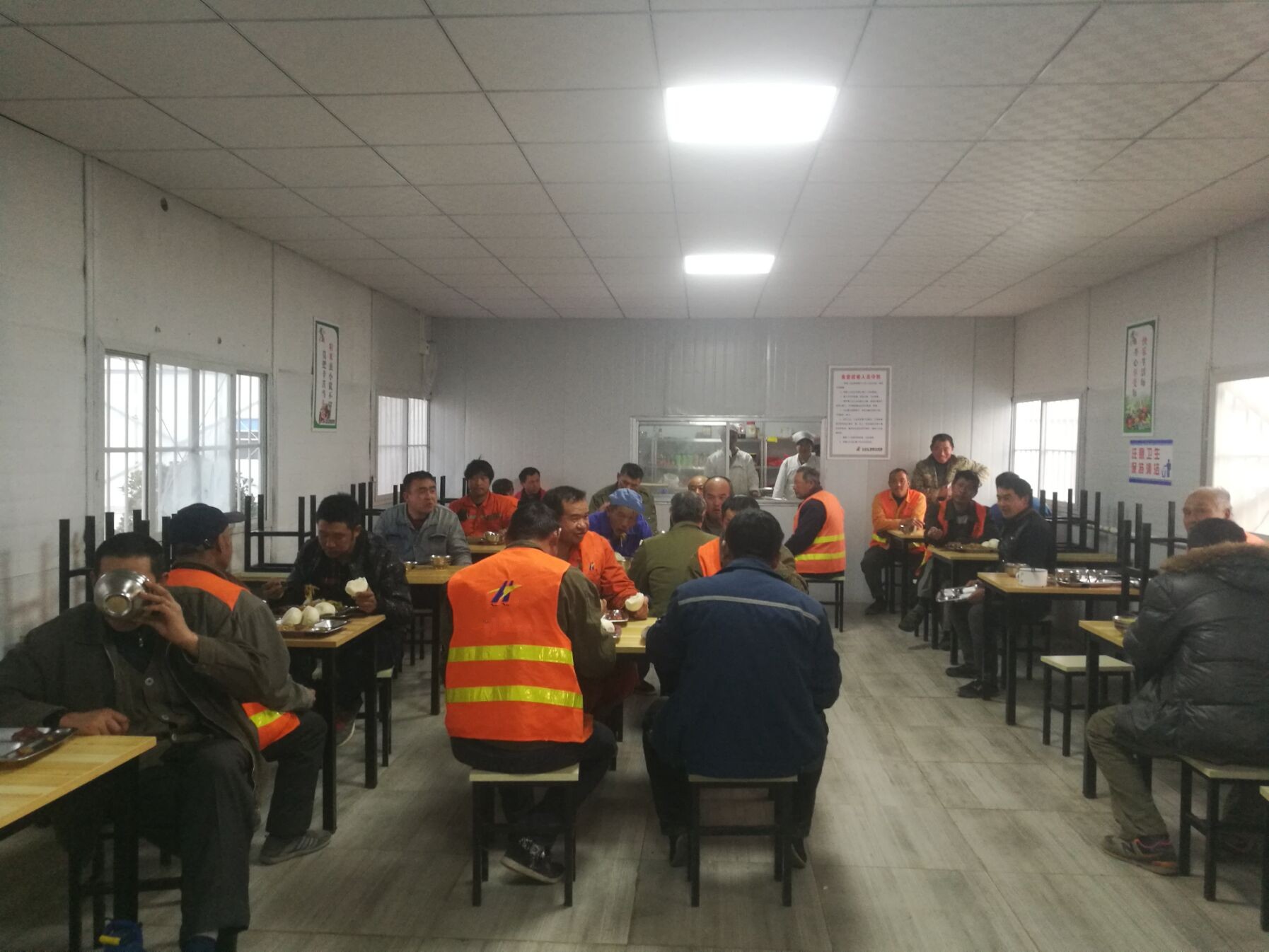 ??? 為提高勞務(wù)人員生活質(zhì)量,食堂內統一配發(fā)飯卡,規定時(shí)間就餐。項目部外聘專(zhuān)業(yè)廚師,每餐保證四菜一湯,伙食質(zhì)量得到有效保障和改善,試行期間得到勞務(wù)人員的好評,取得良好效果,也為安全標桿項目部建設打下堅實(shí)基礎。