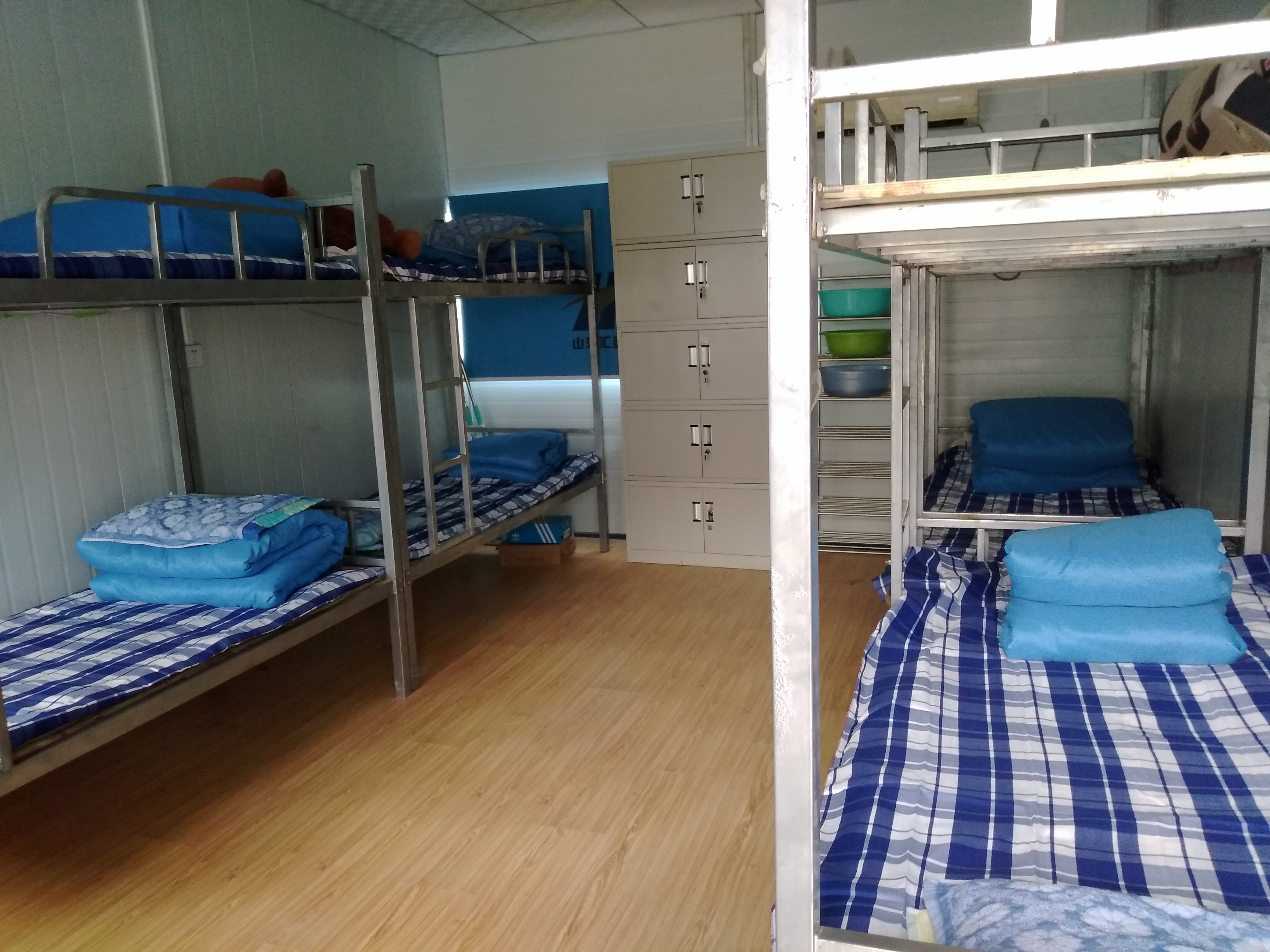 ??? 為便于勞務(wù)人員日常管理,項目部推行勞務(wù)人員生活區集中設置,民工生活集中管理,設置大食堂,統一做飯,集中用餐模式。項目生活區實(shí)施公寓化管理,勞務(wù)人員生活區域使用門(mén)禁,實(shí)行刷卡進(jìn)入;民工生活區設置水房、男女衛生間、洗浴間等生活設施,同時(shí)宿舍內為勞務(wù)人員統一配發(fā)被褥枕套、衣櫥鞋廚等生活用品,為他們提供了舒適溫馨的住宿環(huán)境。