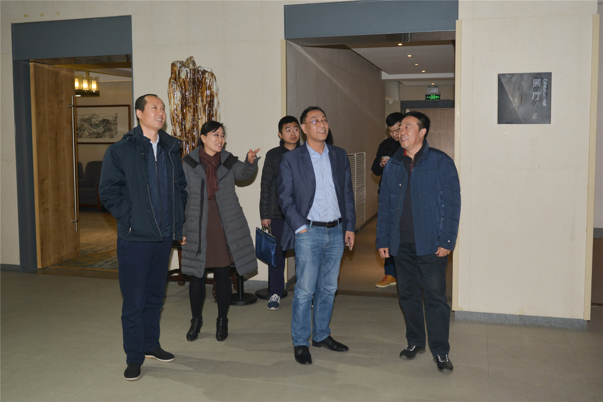 ??? 天橋區委書(shū)記劉程華,濟南市總工會(huì )副主席戚淑斌,天橋區委常委、辦公室主任程松,濟南市總工會(huì )宣教文體部部長(cháng)王繼全等蒞臨集團大成美術(shù)館參觀(guān)“迎狗年春聯(lián)展”。集團黨委書(shū)記、董事長(cháng)湯繼沂,工會(huì )主席、總經(jīng)濟師朱相波等陪同。