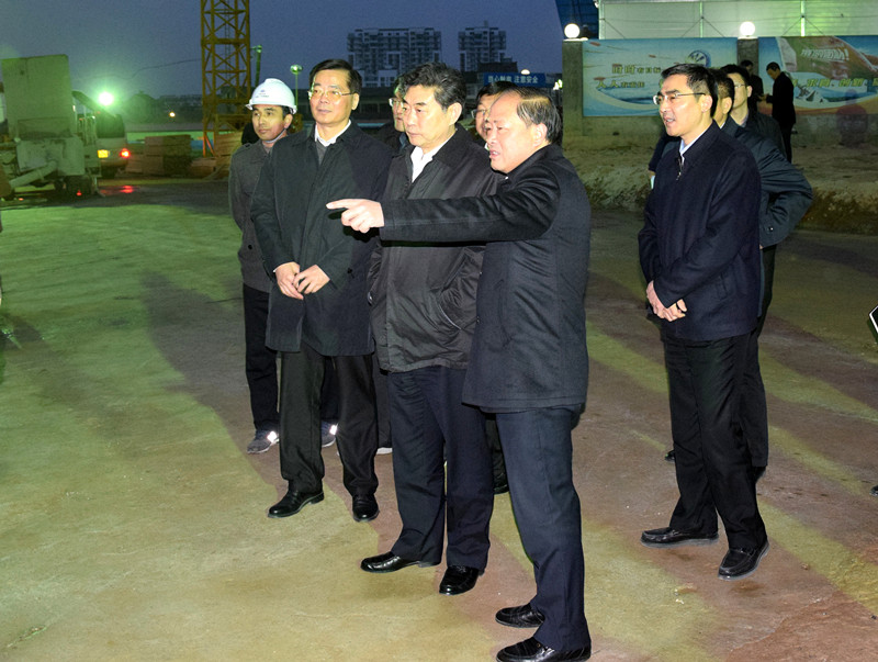 ??? 12月27日,安徽省委常委、常務(wù)副省長(cháng)鄧向陽(yáng)察看集團承建的宣城火車(chē)站東廣場(chǎng)工程。宣城市委書(shū)記韓軍,市委副書(shū)記、市長(cháng)張冬云,副市長(cháng)汪謙慎等陪同。