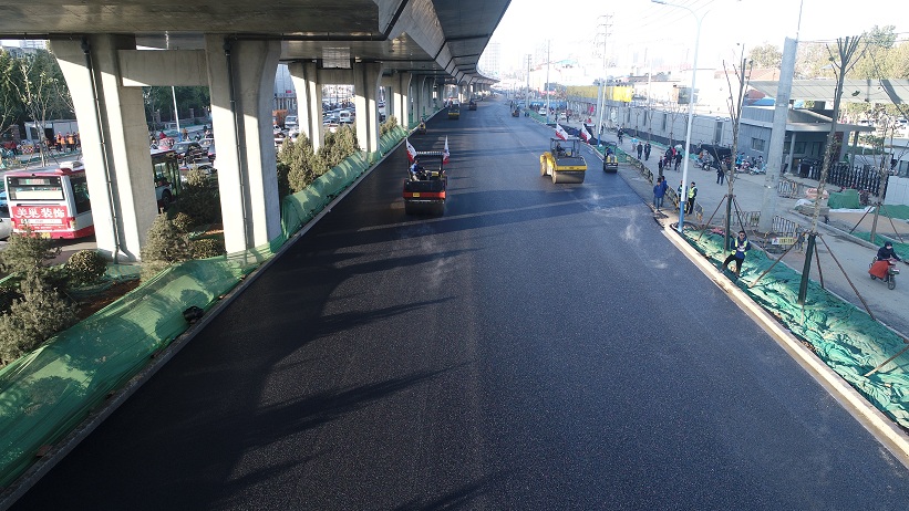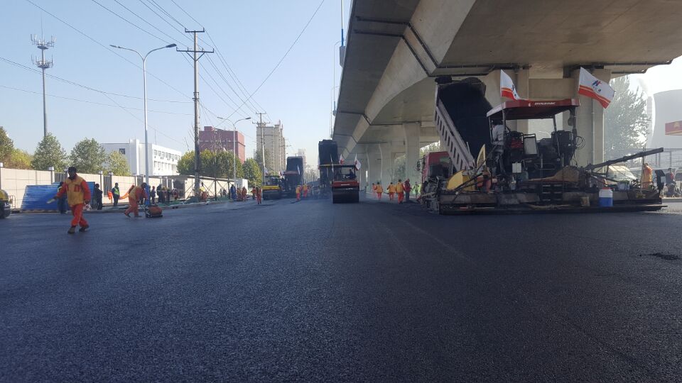 工業(yè)北路全面開(kāi)啟地面道路瀝青上面層攤鋪施工