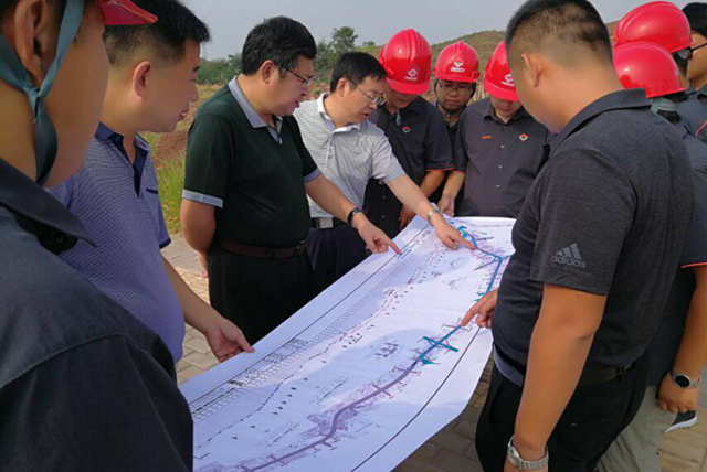 ??? 9月23日,集團黨委副書(shū)記、總經(jīng)理牟曉巖,副總經(jīng)理呂守明一行到二分公司承建的贛州市客家大道西延工程指導工作。