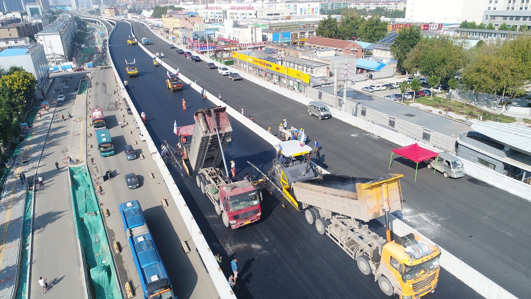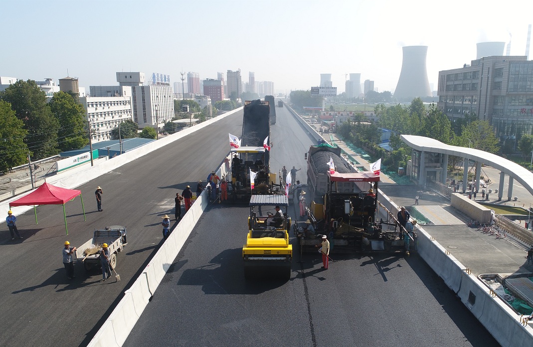 工業(yè)北路高架橋瀝青上面層攤鋪拉開(kāi)序幕