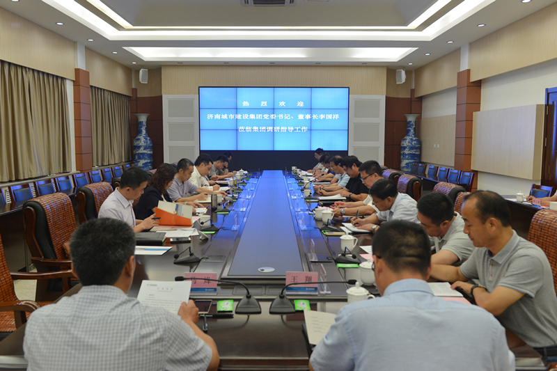 ??? 8月10日上午,濟南城市建設集團黨委書(shū)記、董事長(cháng)李國祥,副總經(jīng)理、總工程師黃蓓,總會(huì )計師范天云及相關(guān)部門(mén)負責人蒞臨集團調研指導工作。集團黨委書(shū)記、董事長(cháng)湯繼沂,黨委副書(shū)記、總經(jīng)理牟曉巖等全體領(lǐng)導班子成員,以及相關(guān)部室負責人在四樓會(huì )議室參加調研座談。