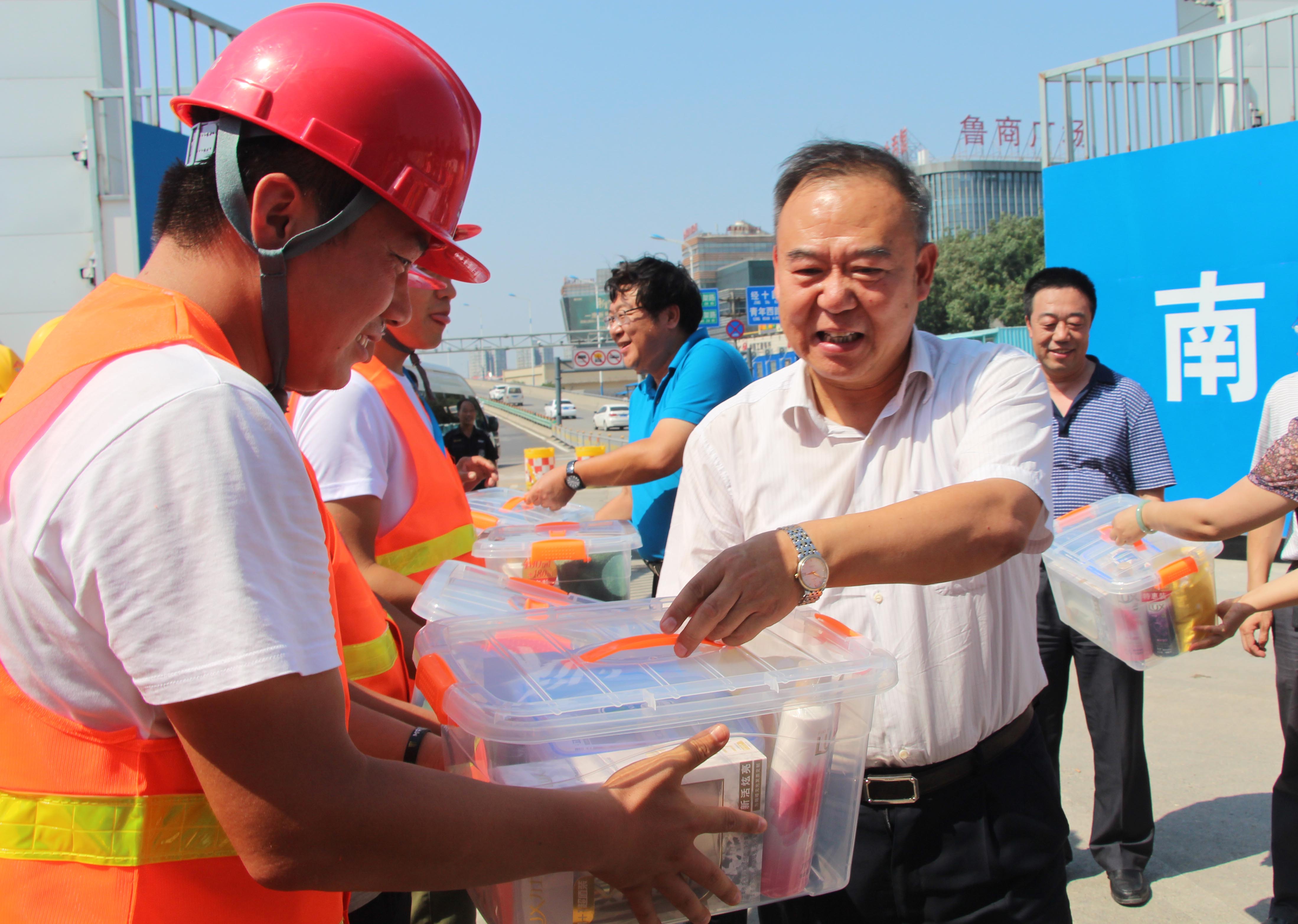 ??? 孫積港詳細了解了順河高架南延二期工程情況,對集團一線(xiàn)職工在重點(diǎn)工程中戰高溫,斗酷暑,搶趕工期,忘我奉獻,所表現出的“城建鐵軍”精神給予高度贊揚。他代表市總工會(huì )為一線(xiàn)職工發(fā)放了防暑降溫物品,并對集團的各項防暑降溫工作給予肯定。