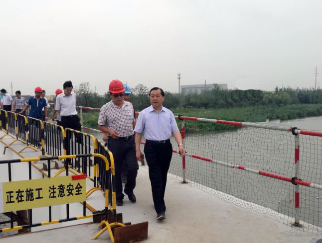 ??? 7月1日上午,揚州市市委書(shū)記謝正義一行察看集團承建的古運河凌波橋工程。揚州三灣投資發(fā)展有限公司董事長(cháng)方璇智及施工方代表陪同。