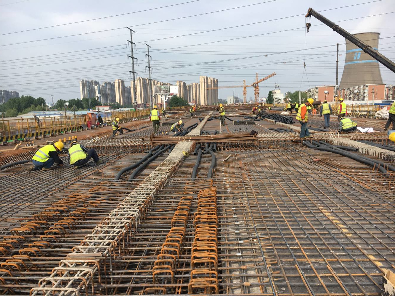 ??? 五分公司承建的工業(yè)北路快速路第二標段箱梁共計19聯(lián),于2016年11月15日開(kāi)始首件箱梁澆筑,年前澆筑完成5聯(lián)箱梁;剩余14聯(lián)箱梁于年后3月8日開(kāi)始澆筑,歷時(shí)105天,順利完成14聯(lián)箱梁主體澆筑。年后共計完成鋼筋綁扎7100噸,澆筑砼37000方。