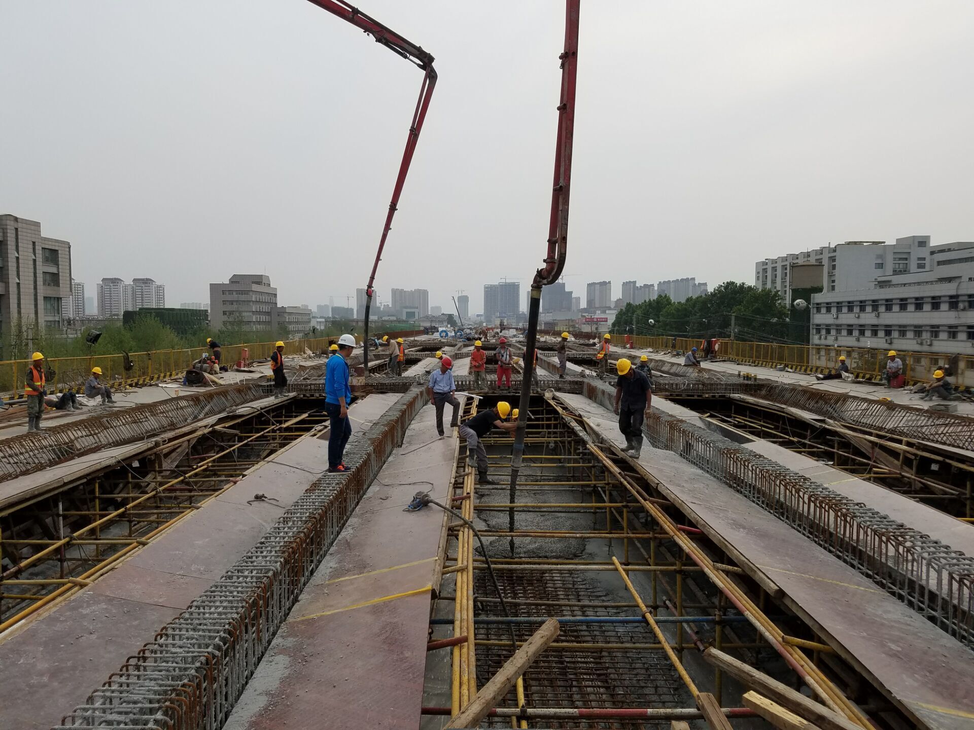 ??? 為確保高架箱梁砼澆筑的順利進(jìn)行,項目部領(lǐng)導高度重視,提前謀劃,澆筑前召開(kāi)箱梁交底會(huì )議,研究?jì)?yōu)化澆筑方案,安全技術(shù)交底到班組、個(gè)人。施工過(guò)程中,3聯(lián)箱梁受4道220KV超高壓的影響,無(wú)法正常施工,項目部主動(dòng)聯(lián)系電力部門(mén),制定安全防護方案,在保證安全的前提下,合理安排施工工序,確保停電后達到立即形成砼澆筑條件,將影響降到最低。