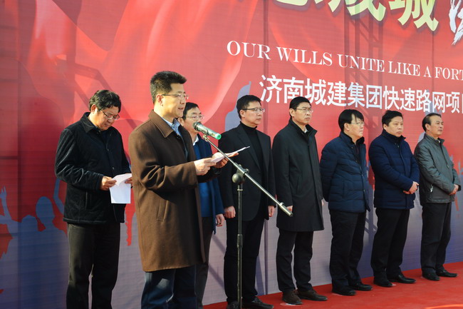??? 2月15日上午9:30,集團在順河高架南延項目部舉行“眾志成城? 決戰2017”—— 濟南城建集團快速路網(wǎng)項目建設誓師大會(huì )。